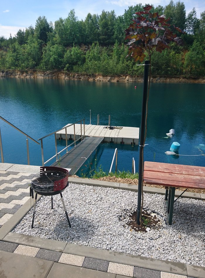 Přístup do vody je po dvou schodištích, u kterých jsou zábradlí a usnadňují vstup i výstup z vody.